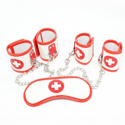 Fetish Restraint Adult Games Nurse Training Role Play Bondage Kit Hand Cuffs Blindfold 3pcs Bondage Set Sex Toys for Couple