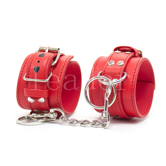 Adjustable PU Leather Metal Handcuffs Wrist Cuffs Couple Sex Toys, Sex Bondage Restraint Slave Game Toys