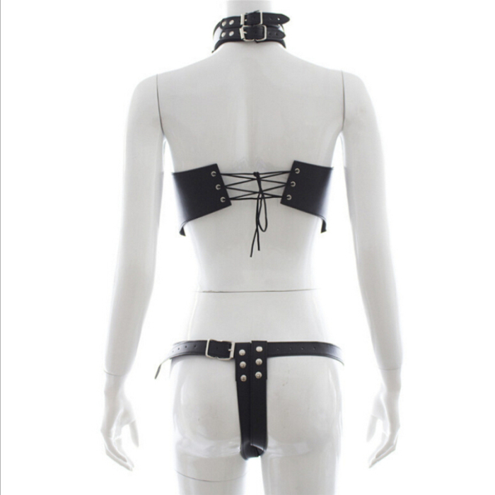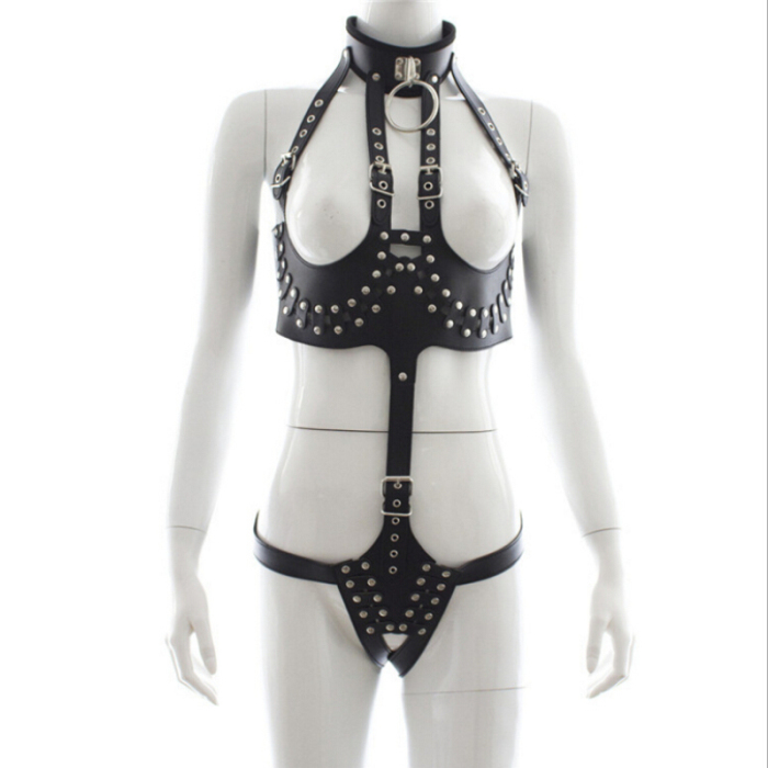 Nail Black Leather Sexy Underwear Women Sex Lingerie Fetish Open Crotch Breast Exposed Outfit Bondage Adult Games Sex Toys